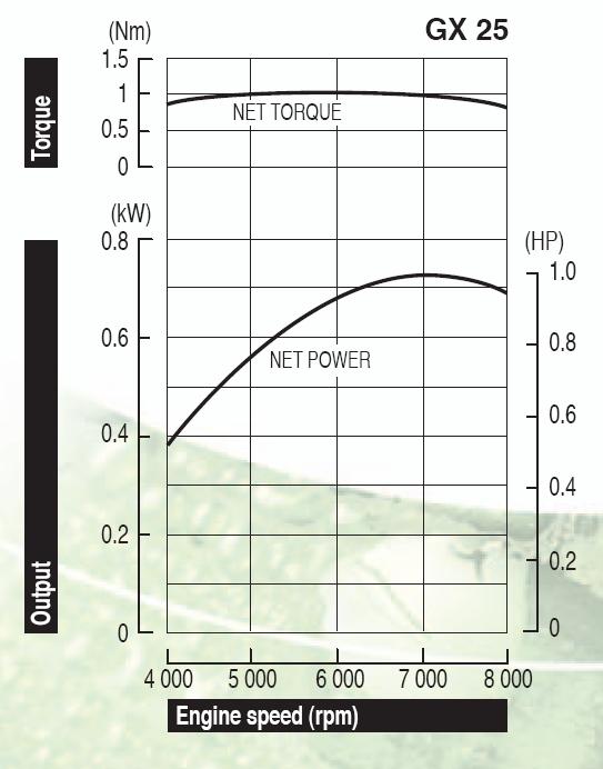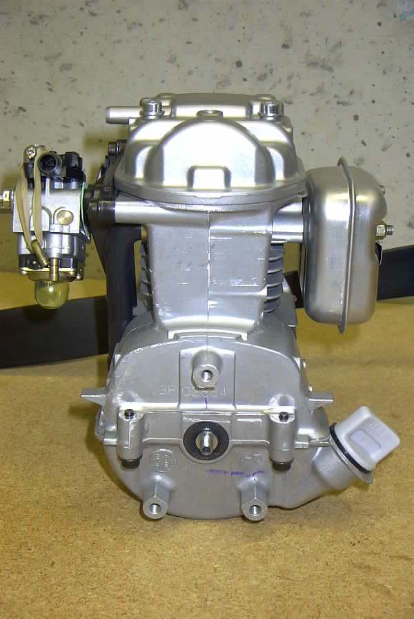 Il s’agit d’un moteur 4 temps d’une cylindrée de 25cc, développant une puissance de 700 watts à 7000t/min, pour un poids record de 2,78 kg !