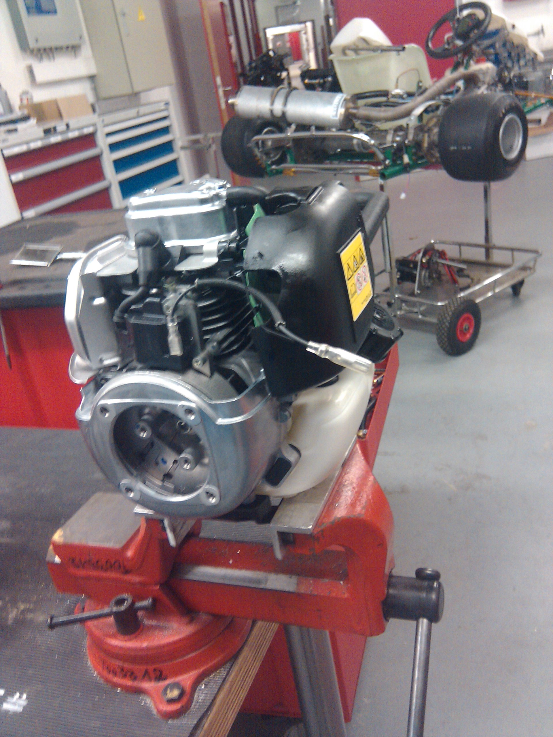 Une fois le moteur chaud, nous l’avons vidangé de son essence et fait tourné jusqu’à sa coupure. Ensuite, nous y avons rajouté 25 ml d’essence et fait tourné à pleine charge jusqu’à ce qu’il n’en ai plus. Il a tourné 2min 45 avant de se couper. Néanmoins il restait un peu d’essence dans la pompe d’amorçage pour le faire tourner à bas régime.