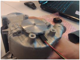 mesurer cette information via un capteur hall délivrant un courant lorsqu’il subit une variation de flux magnétique créée par le passage d’un aimant. Nous avons donc réalisé un disque en aluminium solidaire du vilebrequin et intégrant un aimant positionné au PMH. Le capteur sera fixé par collage sur le carter moteur. La solution ne nécessitant aucun usinage sur le moteur, nous gardons une grande flexibilité en cas de problèmes !