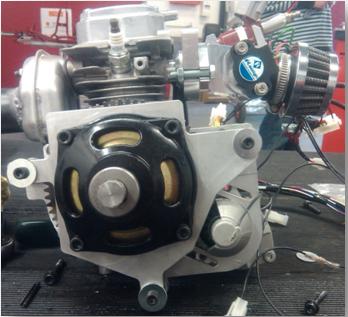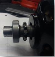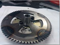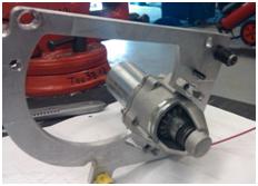 La roue dentée du démarreur à été alésée et fixée par soudure sur un nouveau support plus compact et plus léger, celui-ci permet le centrage précis sur la pièce prolongeant le vilebrequin.