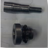 Le support des patins d’embrayage se fixe sur la partie conique d’une « rallonge de vilebrequin ». (A droite)