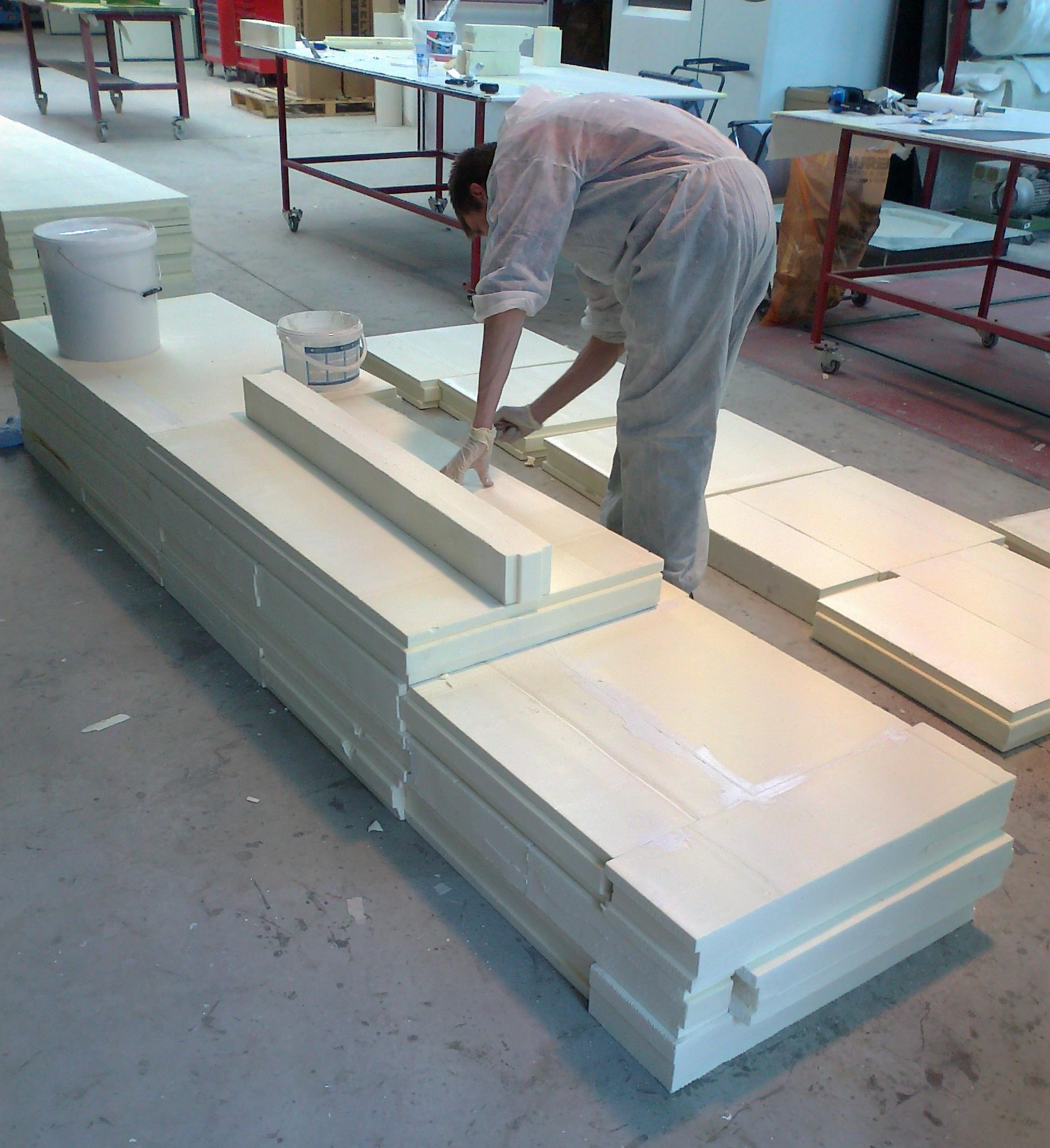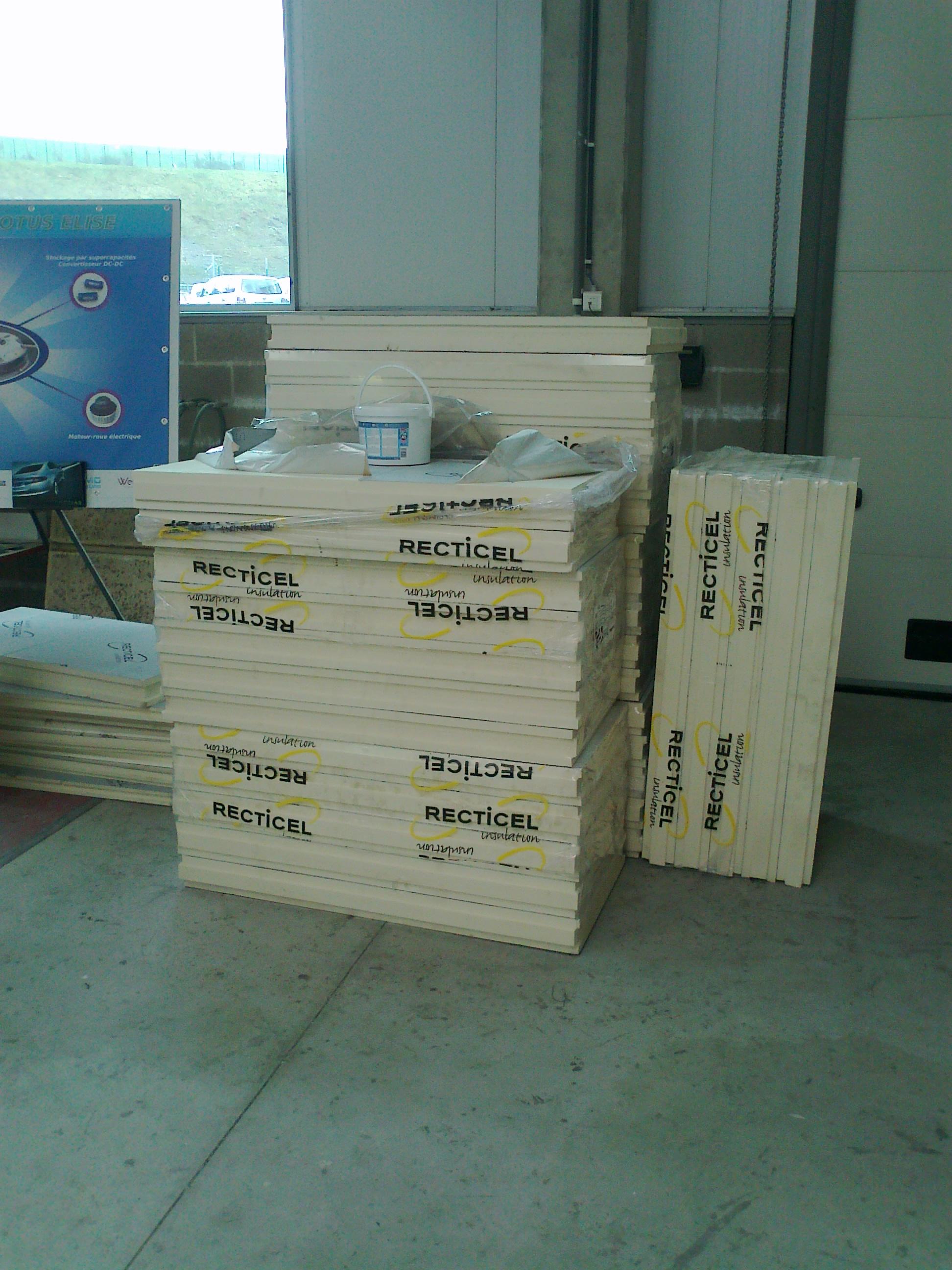 Pour former un bloc à la dimension voulue, nous avons découpé en morceaux ces panneaux et les avons collés ensemble.