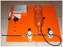 La partie électrique et électronique du banc d’essai a été rendue mobile par l’utilisation d’un pupitre amovible. Celui-ci contient le réservoir, le système de pressurisation du carburant, le boitier électronique ainsi qu’une alimentation d’ordinateur. Cette alimentation 220 volt a été modifiée pour délivrer des tensions variables continues de 3.3 volt, 5 volt et 12 volt ainsi qu’une alimentation pour un circuit de refroidissement. La tension de 5 volt (10 ampères) permet le test des capteurs tandis que les deux prises de 12 volt (5 ampères) permettent l’alimentation du boitier électronique et la connexion d’accessoires tels qu’un compresseur, un chargeur,… Afin d’utiliser ce système en toute sécurité, une protection par fusible a été mise en place. Un arrêt d’urgence permet la coupure instantanée du circuit, un interrupteur commande l’alimentation du boitier, un deuxième interrupteur permet le démarrage de l’alimentation, tandis qu’un bouton poussoir actionne le démarreur du moteur.