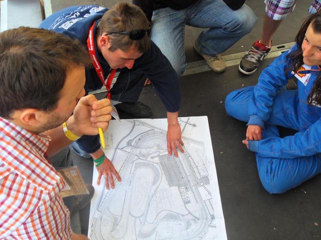 Pendant que nous bossions comme des malades pour régler tous ces problèmes, les autres concurrents ne nous attendaient pas, et profitaient des 2 journées d’essais pour accumuler les kilomètres, peaufiner la stratégie de course et les performances de leurs engins. Nous allions donc devoir affronter directement les 5 runs de 25km (8 tours de circuit) de la compétition sans avoir pu faire un mètre d’essais…