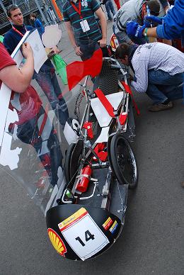 Il faut bien reconnaître que le fait de ne pas avoir pu assembler le proto avec la carrosserie prévue initialement nous a posé de gros problèmes. Les contrôleurs nous ont demandé de faire pas mal de modifications qui, de nouveau, nous ont coûté du temps, de l’énergie, des heures de sommeil, alourdi le véhicule sur la balance, mais aussi esthétiquement, ce qui nous faisait un peu mal au cœur.