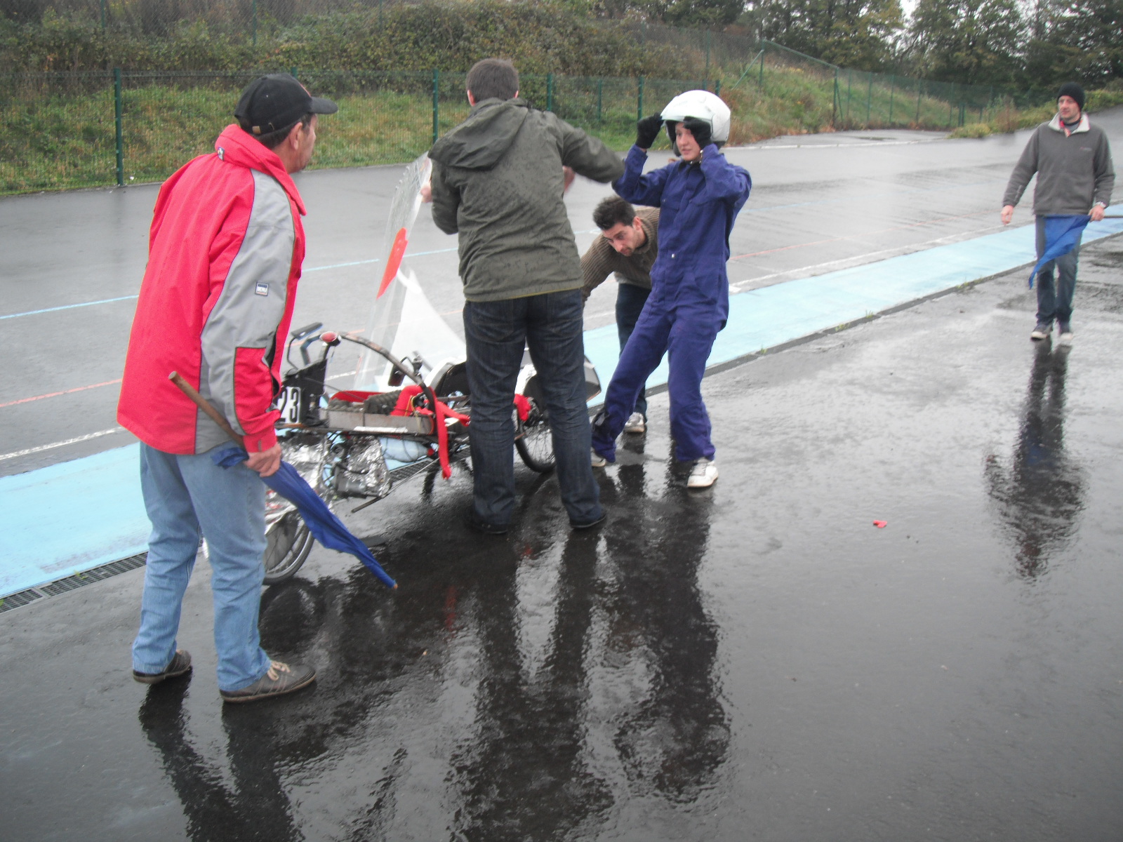 Les « draches » quasi continuelles qui ont sévi le weekend dernier sur le vélodrome de Rebecq ont rendu les choses bien difficiles pour les participants à la première manche du championnat Eco Marathon Wallonie 2011-2012.
