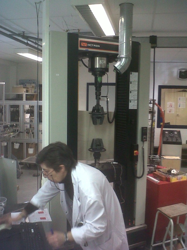 Avant de se lancer tête baissée dans la construction des deux roues avant, il était nécessaire pour nous de connaître les propriétés mécaniques du carbone et de la résine époxy que nous allons utiliser! Pour ce faire, nous avons reçu l’aide de Sirris chez qui Thomas a pu élaborer, à l’aide de Madame Schoumaker, plusieurs essais de traction sur des éprouvettes basées d’une part sur le carbone fourni par le campus et d’autre part sur celui de notre autre partenaire, Techspace Aero.