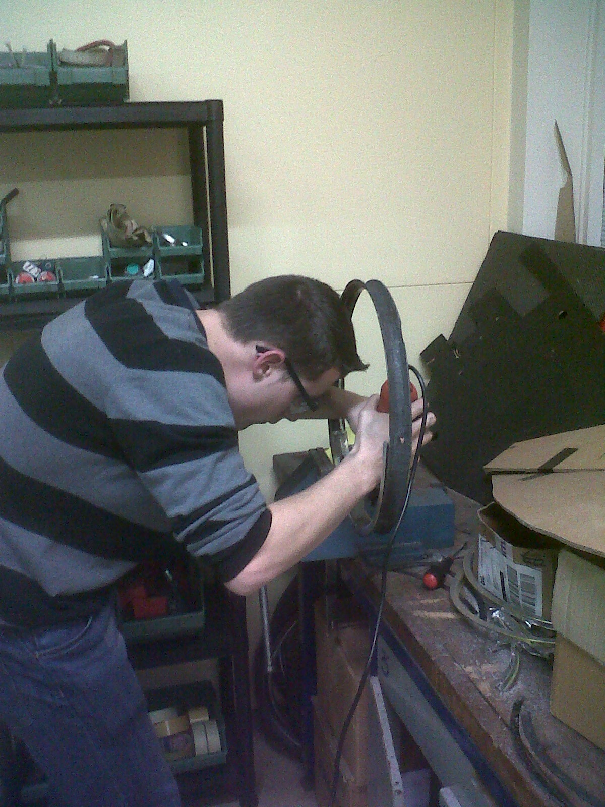 Sur base de ces nouvelles informations, une jante « test » a vu le jour grâce notamment aux conseils de Monsieur Garray, de Sirris, concernant l’orientation des plis carbones, de Lillo et avec l’aide de David, Marcel et Marc , les stagiaires qu’il forme au Campus.