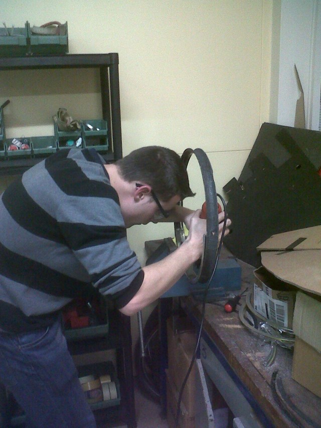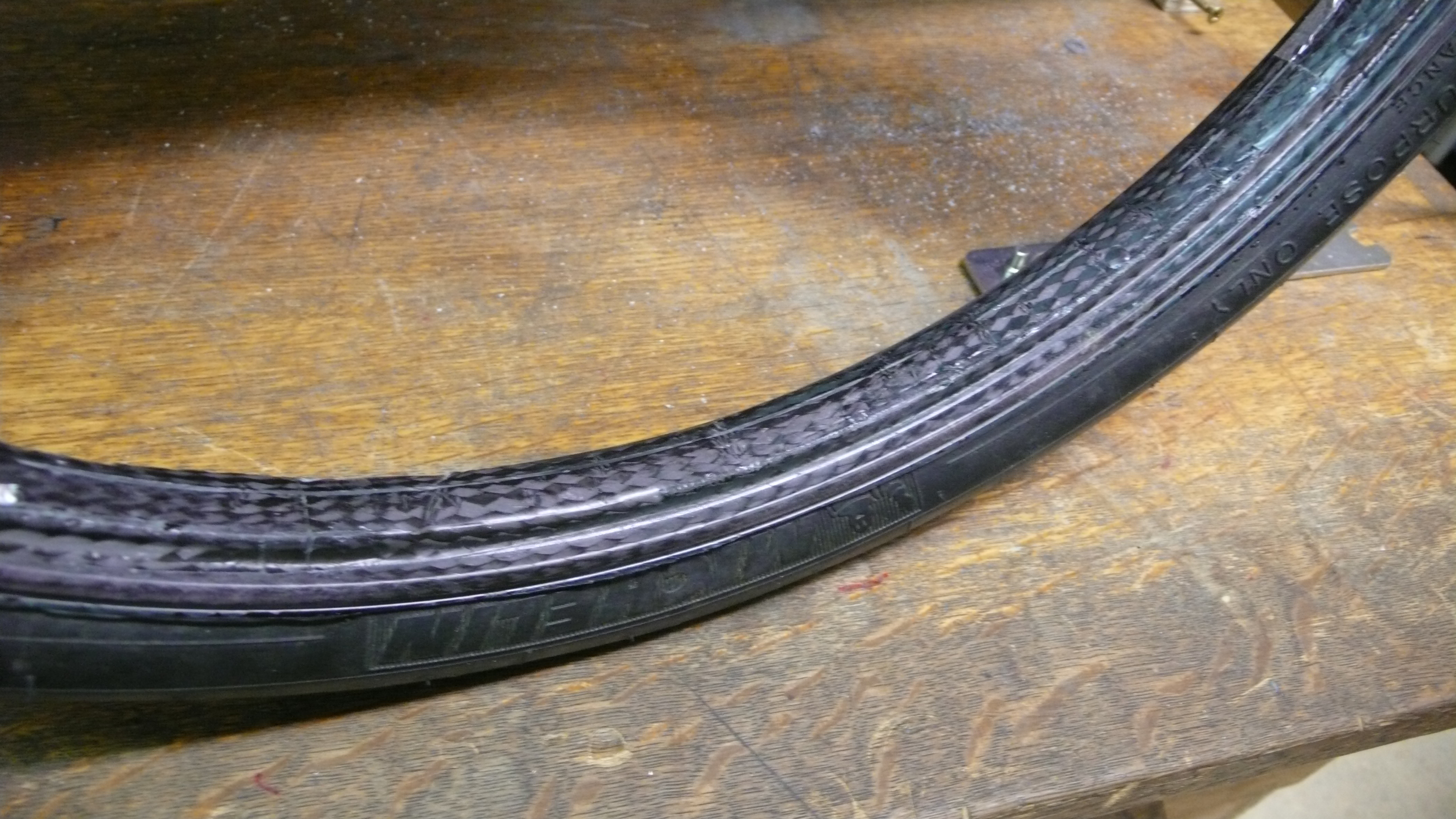 Malheureusement, nous avons été contraints de disquer la jante alu qui nous a servi de moule pour extraire la pièce en carbone.
