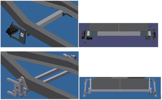Le train avant de l’an dernier reposait sur une seule traverse, pour le nouveau, nous en mettrons deux plus petites. Cela permettra de répartir la charge sur une plus grande surface. Ainsi que de gagner quelques millimètres de hauteur sous le châssis pour rapprocher la coque au plus près.