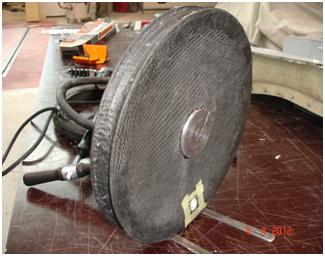 Des anneaux permettant de donner forme aux bords des jantes on été usinés pour nous par la société Laser Flash. La partie préformage a pu être réalisée grâce au savoir faire des opérateurs de chez Techspace Aéro, habitués à travailler le carbone de façon minutieuse. Enfin, nous avons de nouveau pu compter sur notre formateur en matériau composite, Lillo Trovato, et ses élèves (Marcel, David et Marc) du Campus Automobile de Francorchamps: