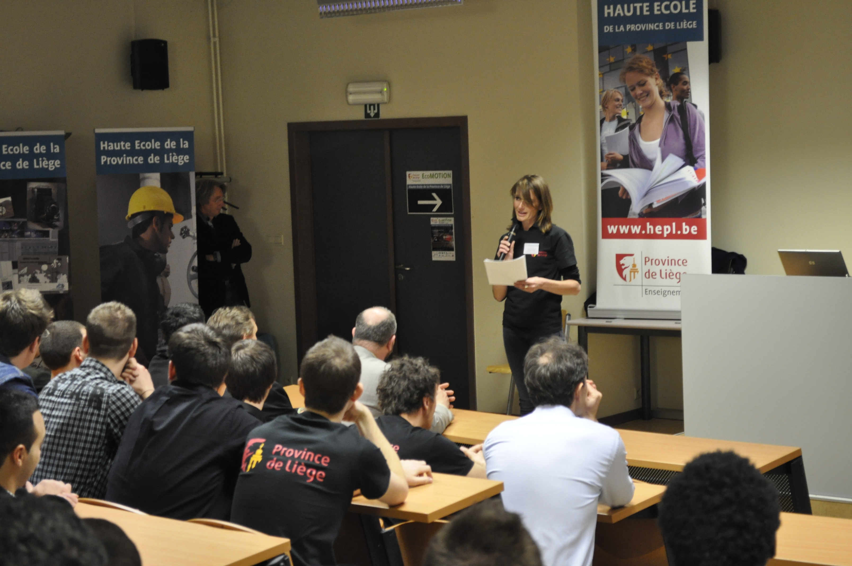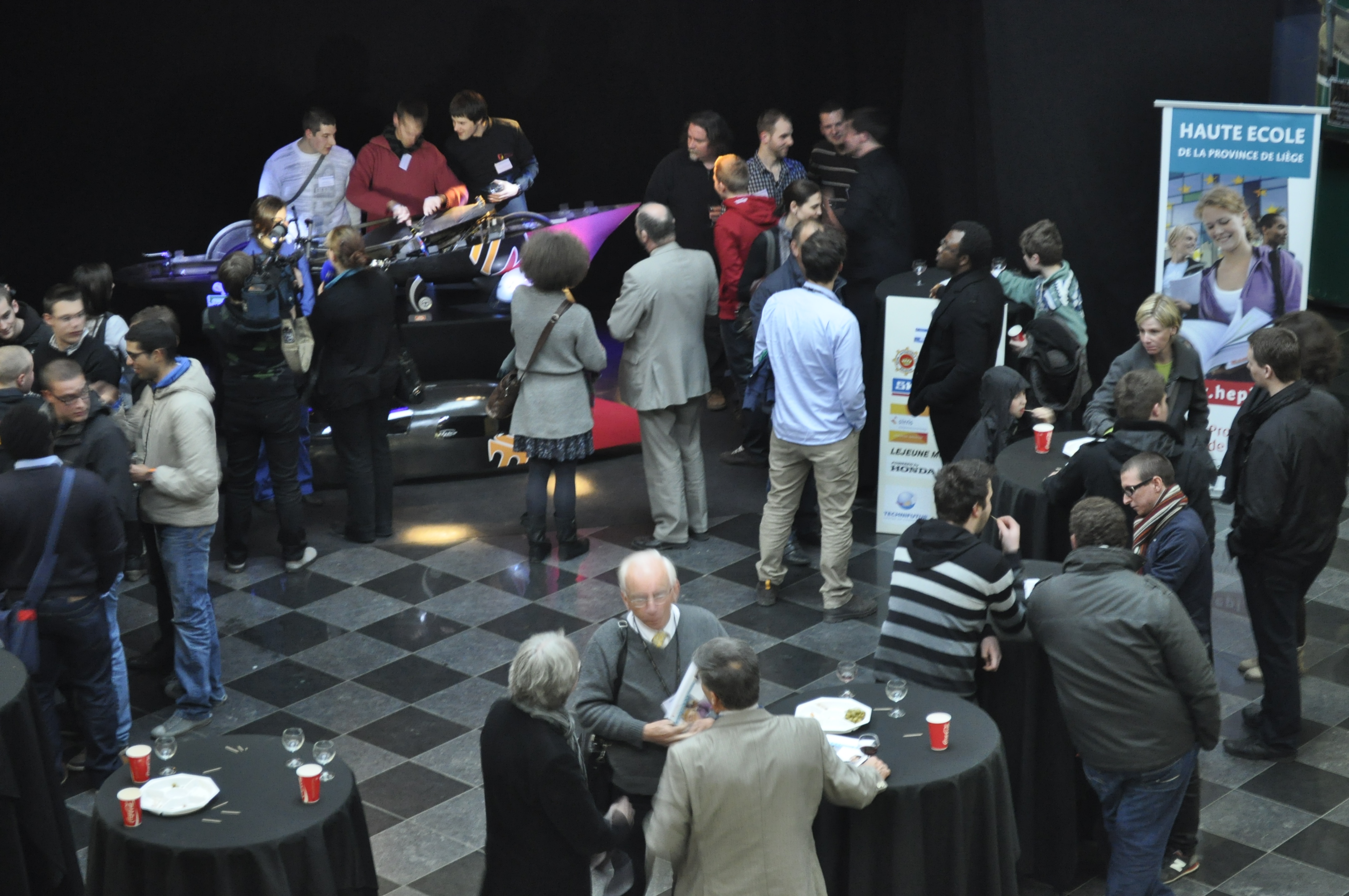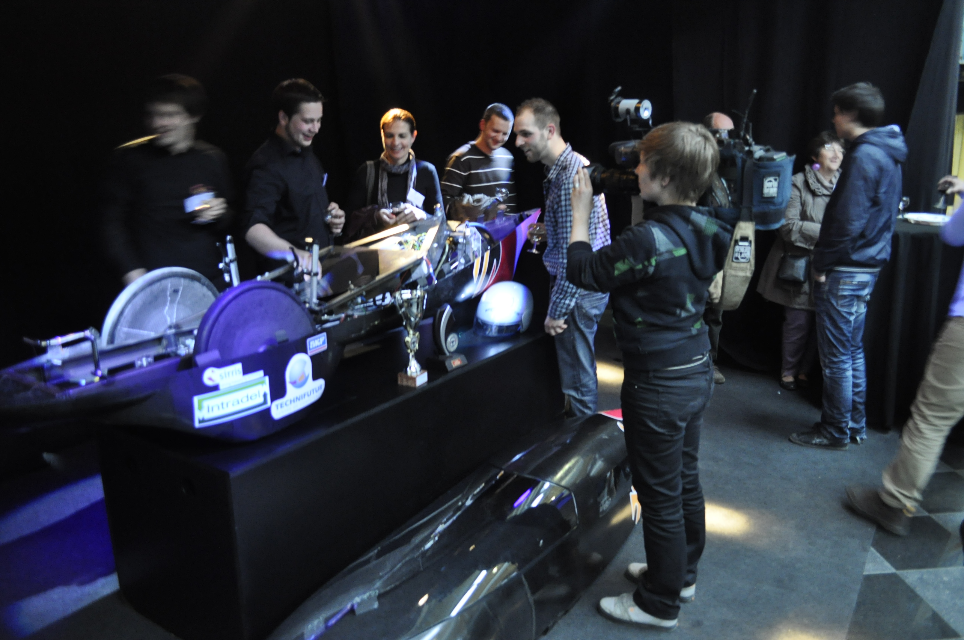 Ainsi, furent abordés la genèse du prototype, ses différentes étapes de conception puis de fabrication, ses premières compétitions et ses premiers succès, l’avenir proche, … professeurs, étudiant(e)s et sponsors se complétant dans leurs interventions lors d’un véritable ping-pong de micros.