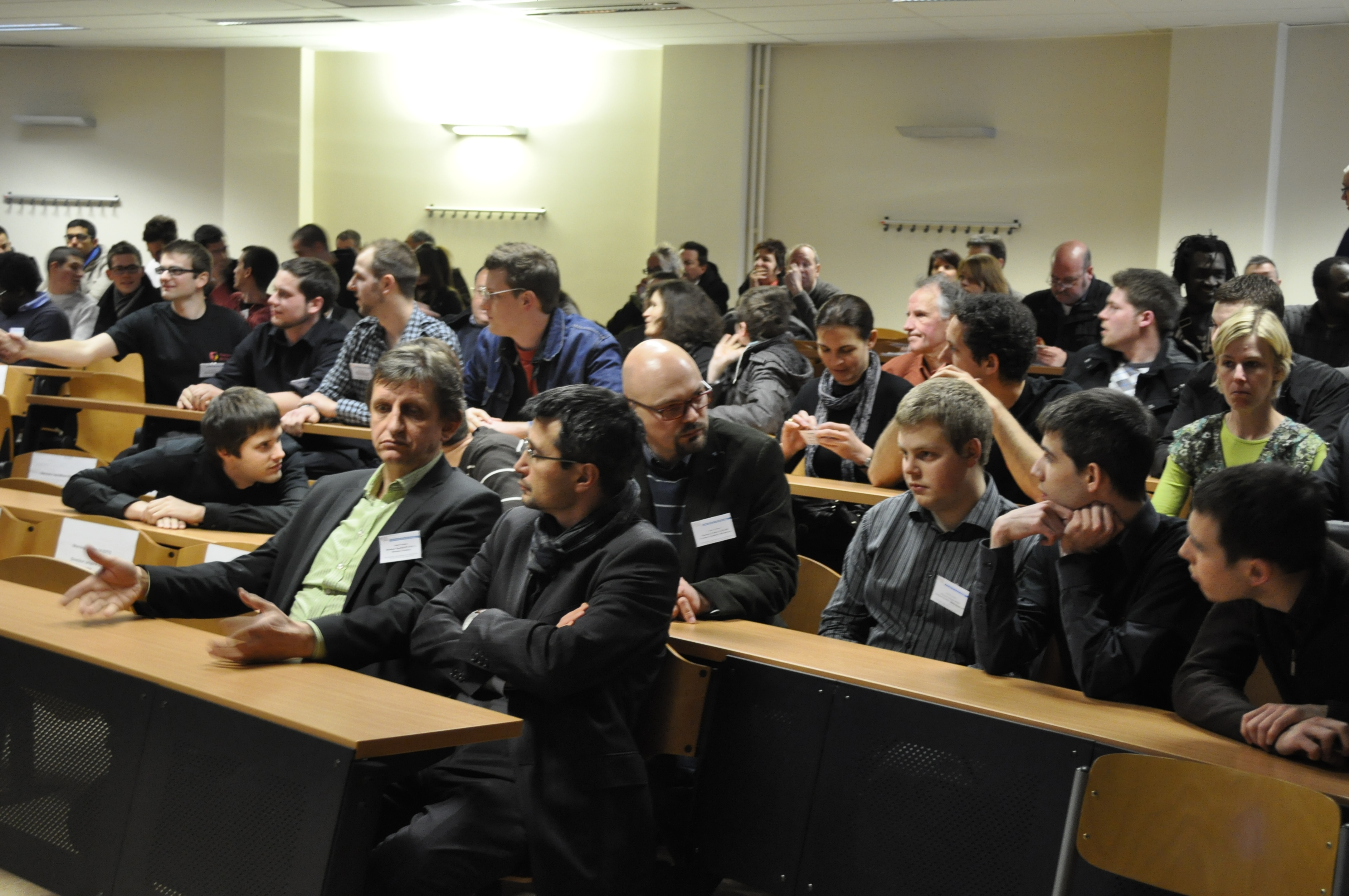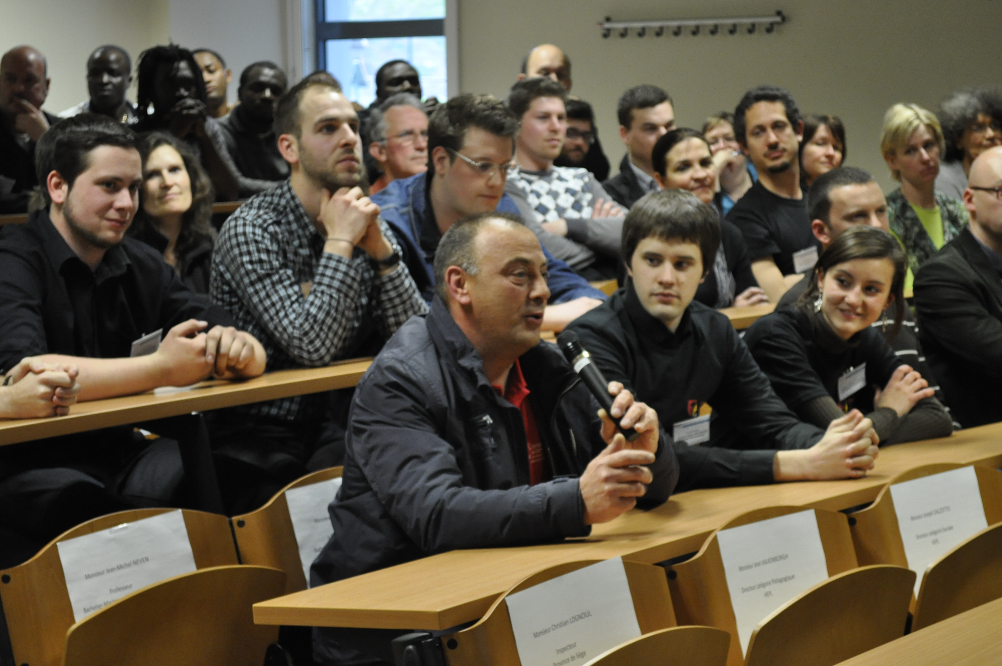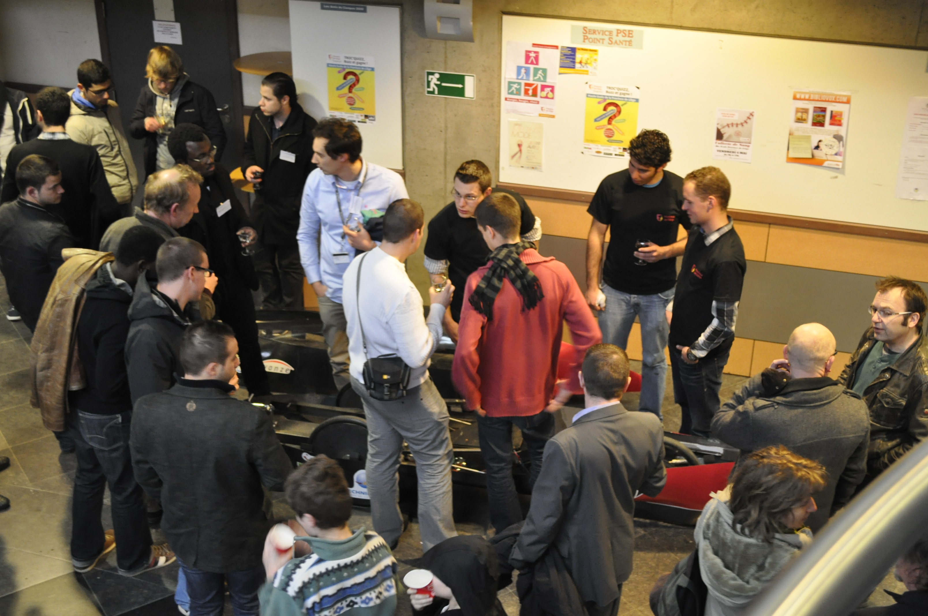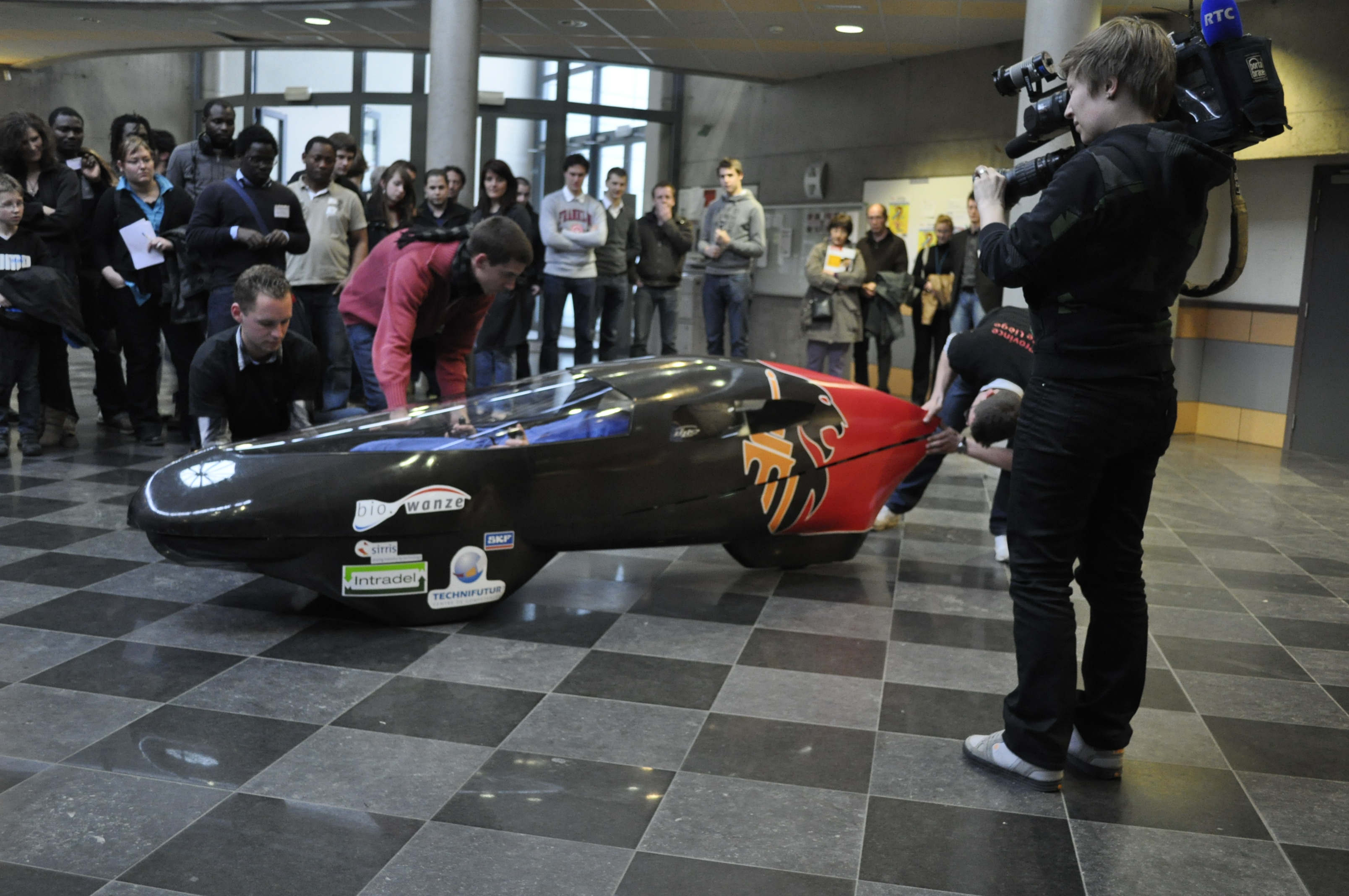 Ainsi, furent abordés la genèse du prototype, ses différentes étapes de conception puis de fabrication, ses premières compétitions et ses premiers succès, l’avenir proche, … professeurs, étudiant(e)s et sponsors se complétant dans leurs interventions lors d’un véritable ping-pong de micros.