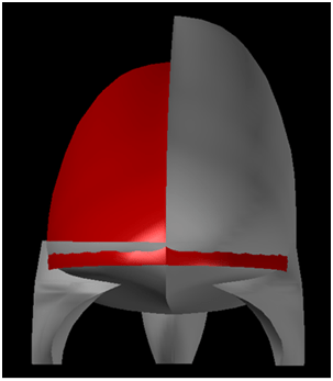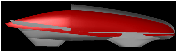 Voyez ci-dessous les simulations qui nous ont permis de déterminer la nouvelle ligne du joint entre partie supérieure et inférieure, mais également la comparaison entre la nouvelle version en rouge et l’ancienne, en gris.