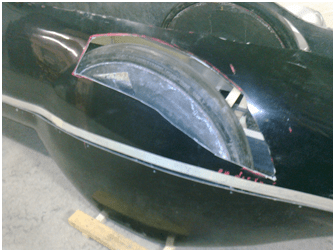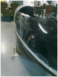 Nous avons donc réalisé une coque de test en polyester, que nous avons découpé pour mieux voir comment cela se passait du côté des roues.