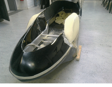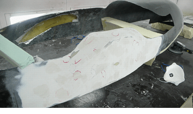 Pendant ce temps, l’autre partie de l’équipe découpait le moule original pour laisser dépasser les passages de roues