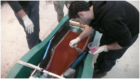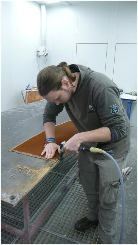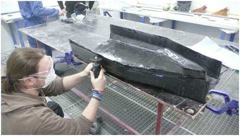 Celui-ci est constitué d’un nid d’abeilles (Nomex) pris en sandwich entre plusieurs couches de carbone. Le Nomex nécessaire pur le siège mais également celui que nous utilisons pour renforcer les deux nouvelles coques nous a très gentiment été offert par Arnaud Brandt. Merci beaucoup Arnaud!