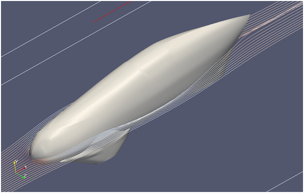 Dans un premier temps, il s’est limité à une simulation en CFD sur base du modèle CAO de la coque.