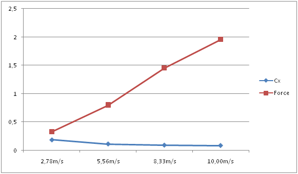 | Vitesse du fluide [m/s] | Cx [/] | Force [N] | Re [x106] à 15°C |