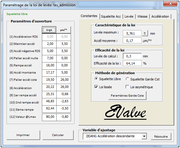 EValve est le logiciel de cette suite qui permet (entre autres!) le calcul de la cinématique et des efforts dynamiques de la distribution.