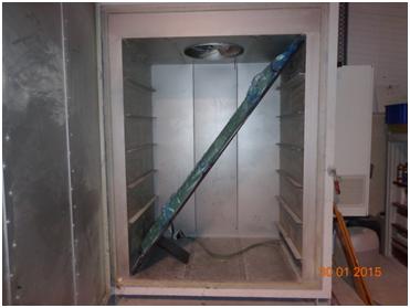 Après un premier séchage, le tout est ensuite placé dans un four pour terminer la polymérisation de la résine, et ce toujours en maintenant le vide. Le châssis est resté une nuit à une température de 60°C.