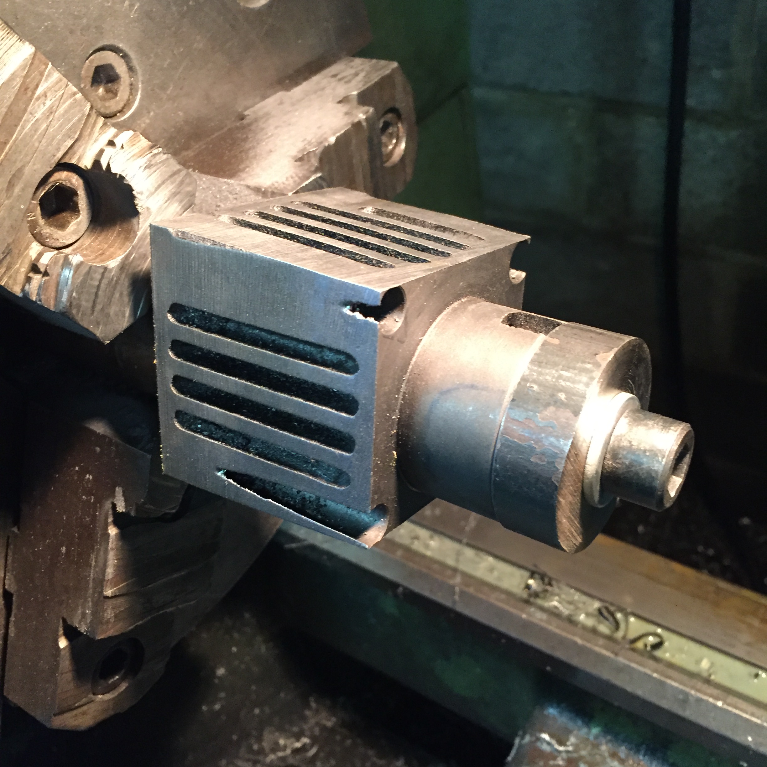 Une fois ces calculs achevés, Guillaume a pu faire les finitions sur la chemise en fonte et usiner le cylindre en aluminium, en suivant les conseils de Frédéric Weber pour la gamme d’usinage.