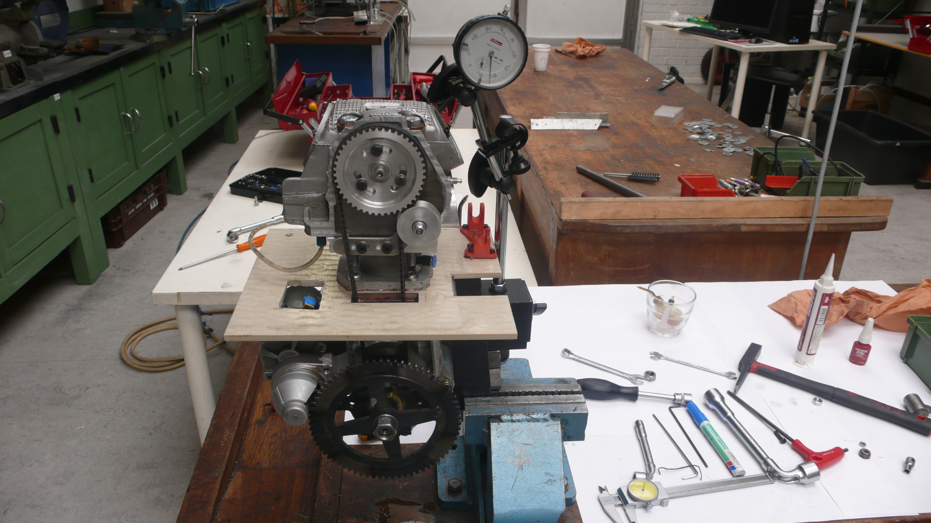 Guillaume Ruwet (www.ruwetmechanics.com) a modifié la culasse existante et fabriqué les poulies et le tendeur nécessaires pour passer d’une distribution commandée par chaîne à une courroie crantée.