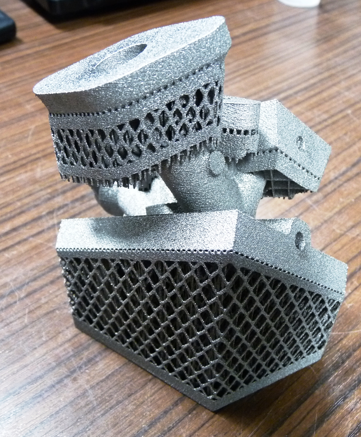 Nous avons, grâce au soutien total de notre partenaire SIRRIS (http://www.sirris.be), pu opter pour une technique de fabrication innovante. En effet, elle a été imprimée en 3D (Ti6Al4V) !