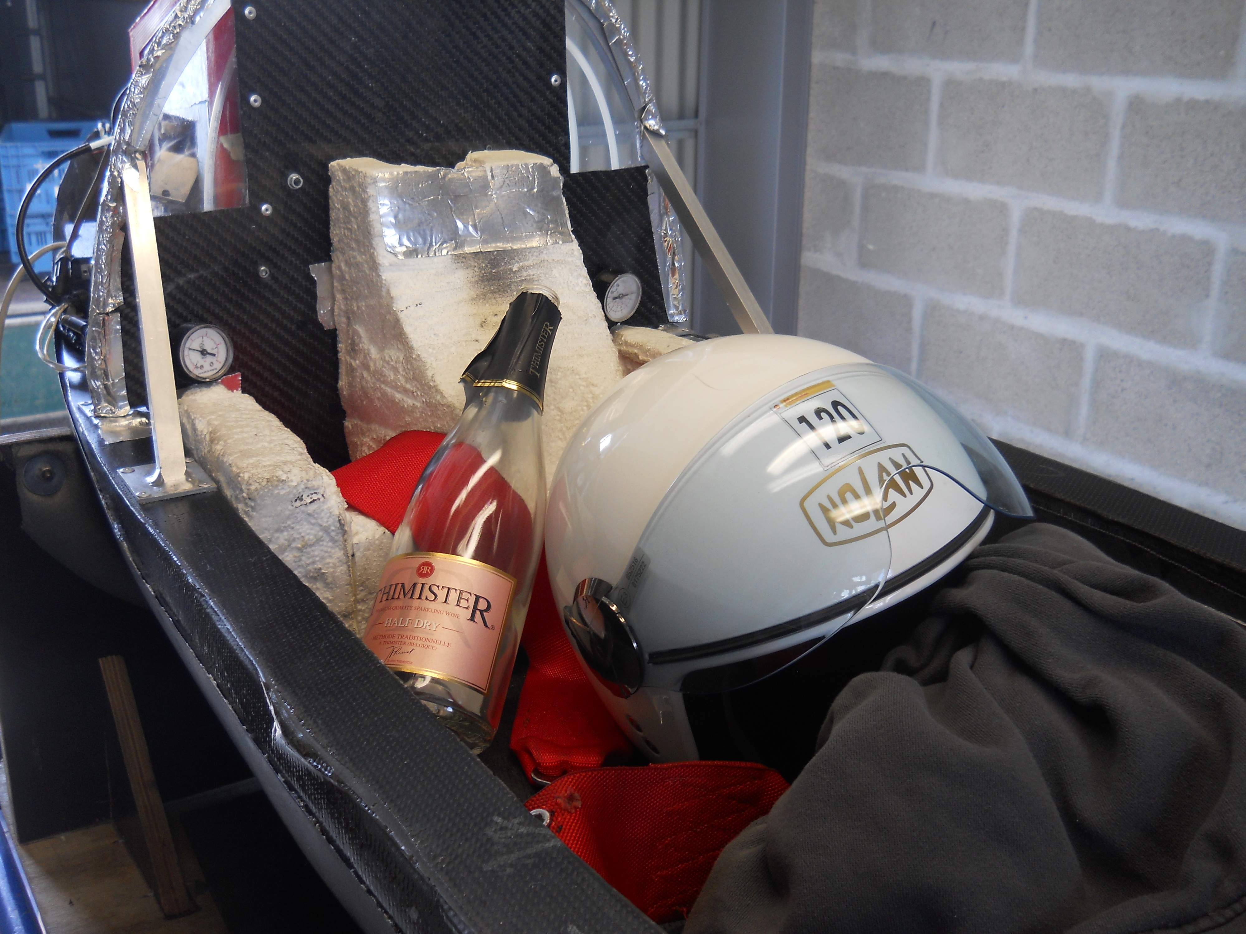 L’équipe répare, et Sarah reprend la piste pour terminer sans encombre les dix tours prévus par l’organisateur, et dans les temps, alors qu’elle découvre la piste. Bien qu’elle nous signale que les roues frottent copieusement dans la coque (pas bon pour la performance ça !), nous décidons de la faire repartir illico pour un dernier run dans la foulée car il ne reste plus qu’une heure de compétition. A nouveau, Sarah fait du très bon boulot et ramène le proto à bon port.