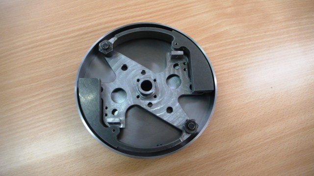 En augmentant nettement le diamètre de friction, nous avons pu réduire la masse des patins de moitié! Bilan: 15% de poids gagnés au total, des réglages facilités, un meilleur guidage de la cloche et un fonctionnement qui devrait être plus « doux »