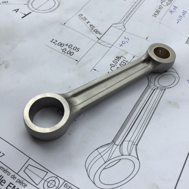 Dans la lignée des travaux entrepris sur le bas moteur d’EcoMOTION 7, après l’embrayage et le vilebrequin, une bielle a également été étudiée par Guillaume Le Quellenec.