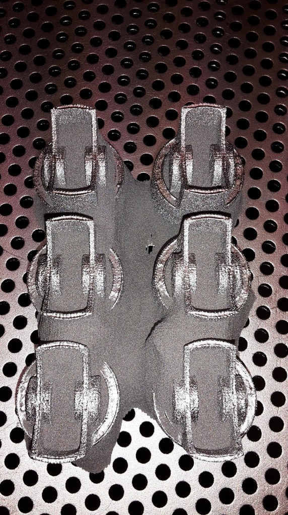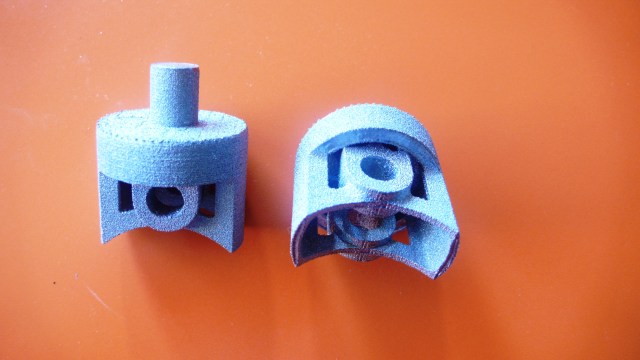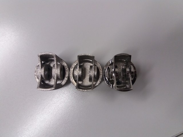 Ci dessous un piston brut d’impression (à gauche), et deux pistons ayant subi un traitement plus ou moins prolongé