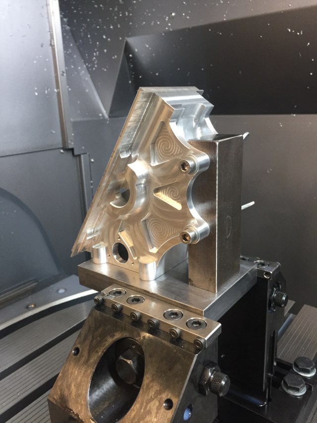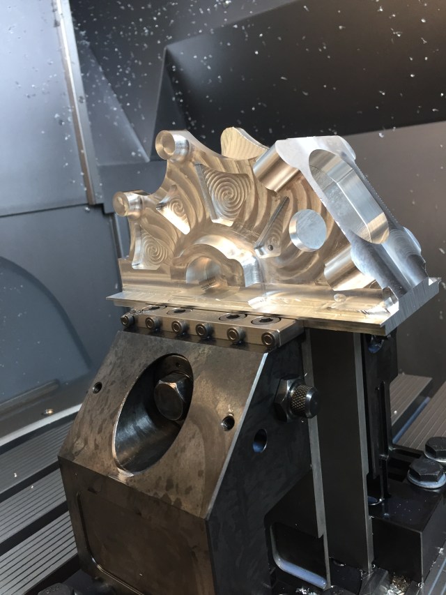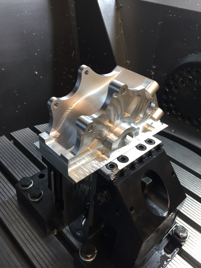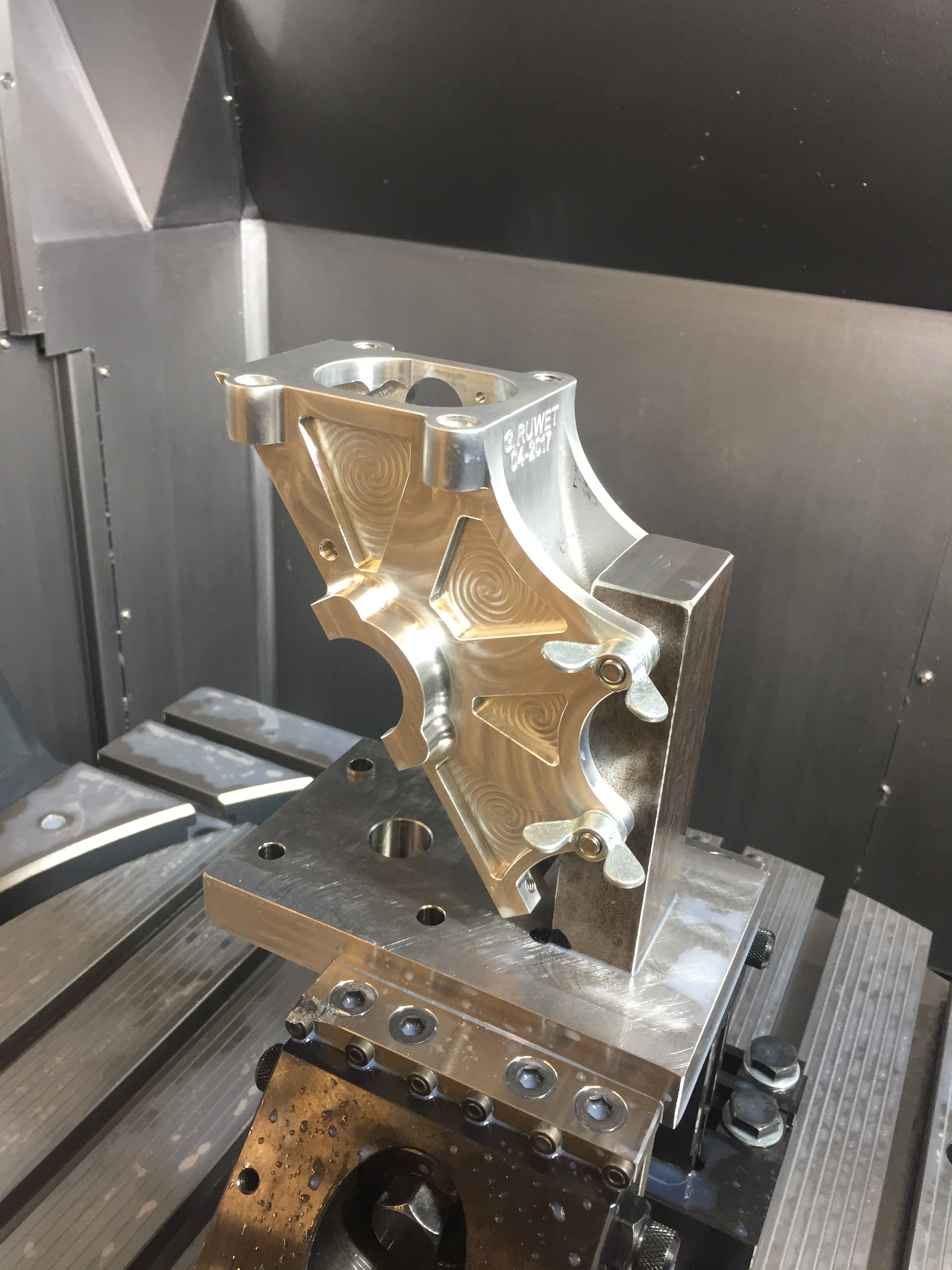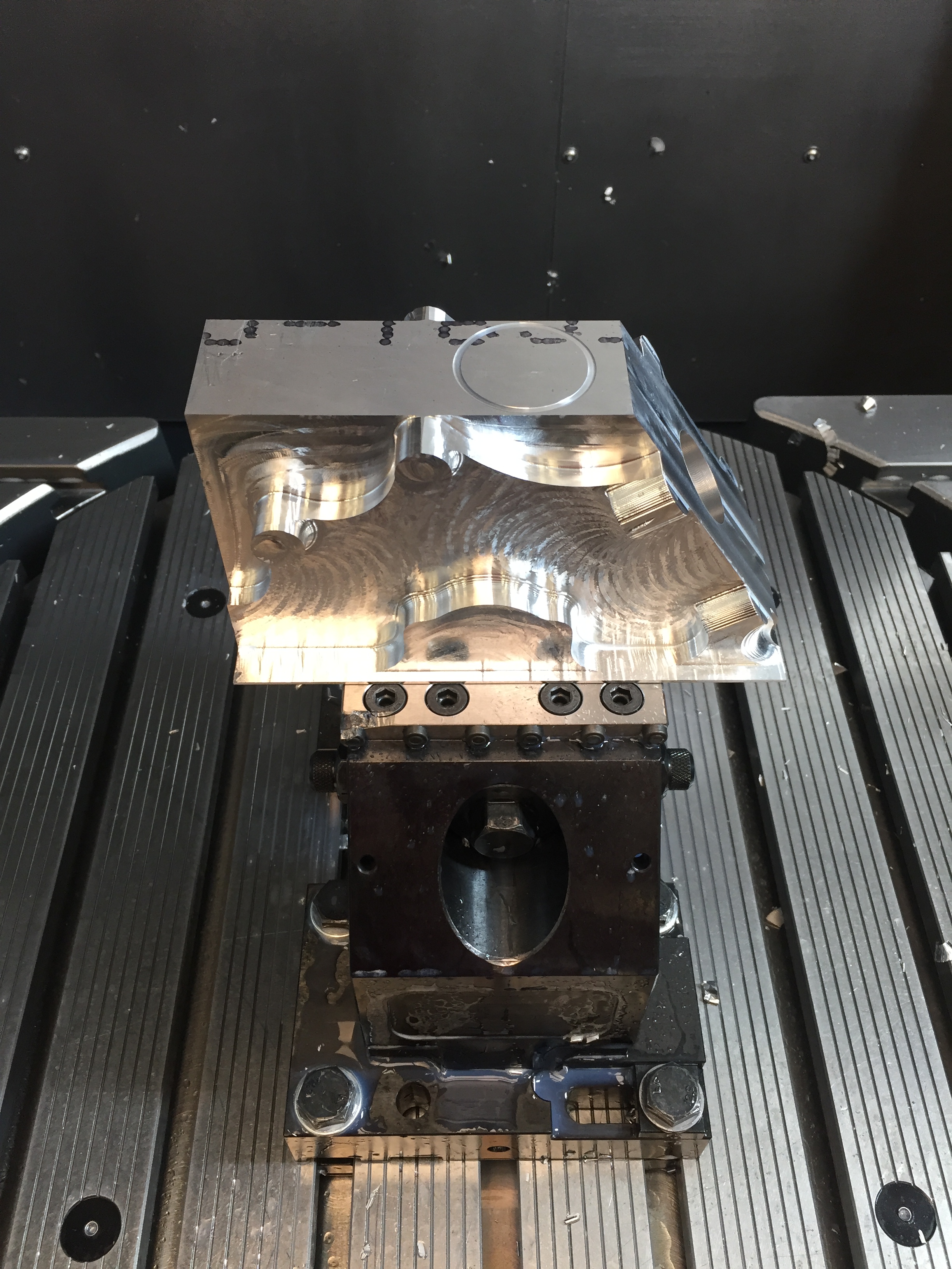En tout, il a fallu 8 journées de travail complètes pour passer du fichier numérique au produit fini. Cela incluant: programmation, outillage et technique de bridage, choix de la technique de travail, choix des outils, usinage,… Il s’agit bien entendu de pièces prototypes réalisées pour la première fois et cela prend donc plus de temps que lorsque la gamme d’usinage est connue et maîtrisée.