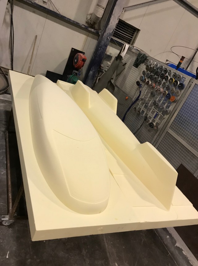 La production de certains éléments à déjà débuté, et les modèles en mousse de PU viennent d’être usinés par notre partenaire DESIGN STONE (http://www.design-stone.com/design_stone_fr). Merci également à notre partenaire Lejeune Motosport pour la logistique !