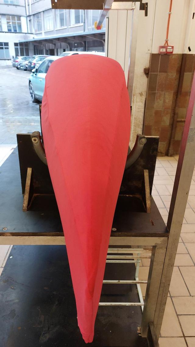 Afin de protéger notre prototype quand il est entreposé ou déplacé en camionette, voir sur une remorque, nous avons décidé de lui faire une housse de protection en tissu.