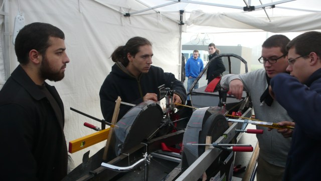 Parallèlement à l’optimisation du châssis, nous avons eu à revoir le système de direction. En effet, le nouveau moteur du prototype est plus encombrant et plus lourd. De plus, le règlement du Shell Eco-Marathon 2013 impose un rayon de braquage de 10m, valeur impossible à atteindre avec l’ancienne direction.