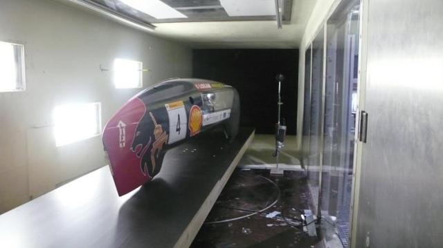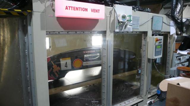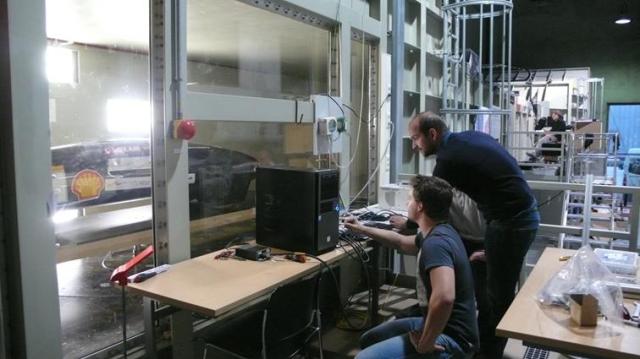 Le docteur Thomas Andrianne, qui dirige le laboratoire de la soufflerie de l’Université de Liège (http://labos.ulg.ac.be/wind-tunnel-lab/), les a très gentiment accueillis pour leur permettre de mesurer les performances aérodynamiques d’EcoMOTION.